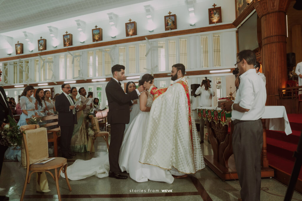 A wedding that’s absolutely dreamlike, fairycore and incredibly blissful is how we would like to describe John and Amaeya’s big day. Their wedding rituals were held at ‘Little Flower SyroMalabar Catholic Church’. The wedding trousseau is curated by the hand-picked sets from ‘Origin Kochi’, ‘Milan Design Kochi’, ‘Jain Ethnic Mansion’ and ‘Josco Jewellers’.