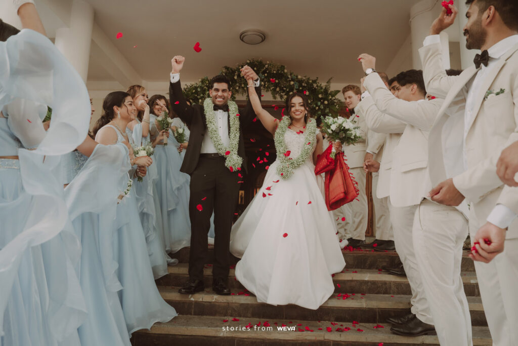 The wedding glam has been perfected by ‘MUA Sijan’. The trendsetting decor views for the day were set by ‘Columbia Events’ and the DJ mix for the beautiful crowd has been curated by ‘Arnold Heiden’. We love a chirpy cheerful wedding bash with tons of candids and true love memories and John and Amaeya’s celebrations marks an aesthetic take on this!